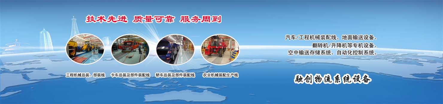 無錫市融創(chuàng)物流系統(tǒng)設(shè)備有限公司專業(yè)從事物流輸送設(shè)備、各類裝配流水線設(shè)備、各類生產(chǎn)非標(biāo)專機(jī)設(shè)備和自動(dòng)化控制系統(tǒng)的專業(yè)生產(chǎn)企業(yè)。廣泛應(yīng)用于轎車、卡車、客車、各類工程機(jī)械、發(fā)動(dòng)機(jī)、車橋、農(nóng)業(yè)機(jī)械、郵政、家電等行業(yè) ...... >> more >>